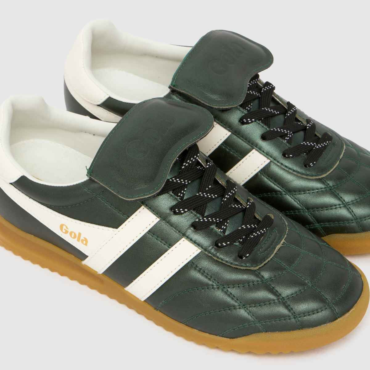 Step back in time with the Stadium '86, a retro-inspired sneaker from the Gola Classics collection. This women's sneaker boasts a striking bottle green and off white palette, offering a blend of vintage flair and modern sophistication with its authentic football inspired fold over tongue. The quilted leather upper delivers a luxurious feel and makes a stand-out statement. Stadium '86 seamlessly merges classic design with contemporary style.