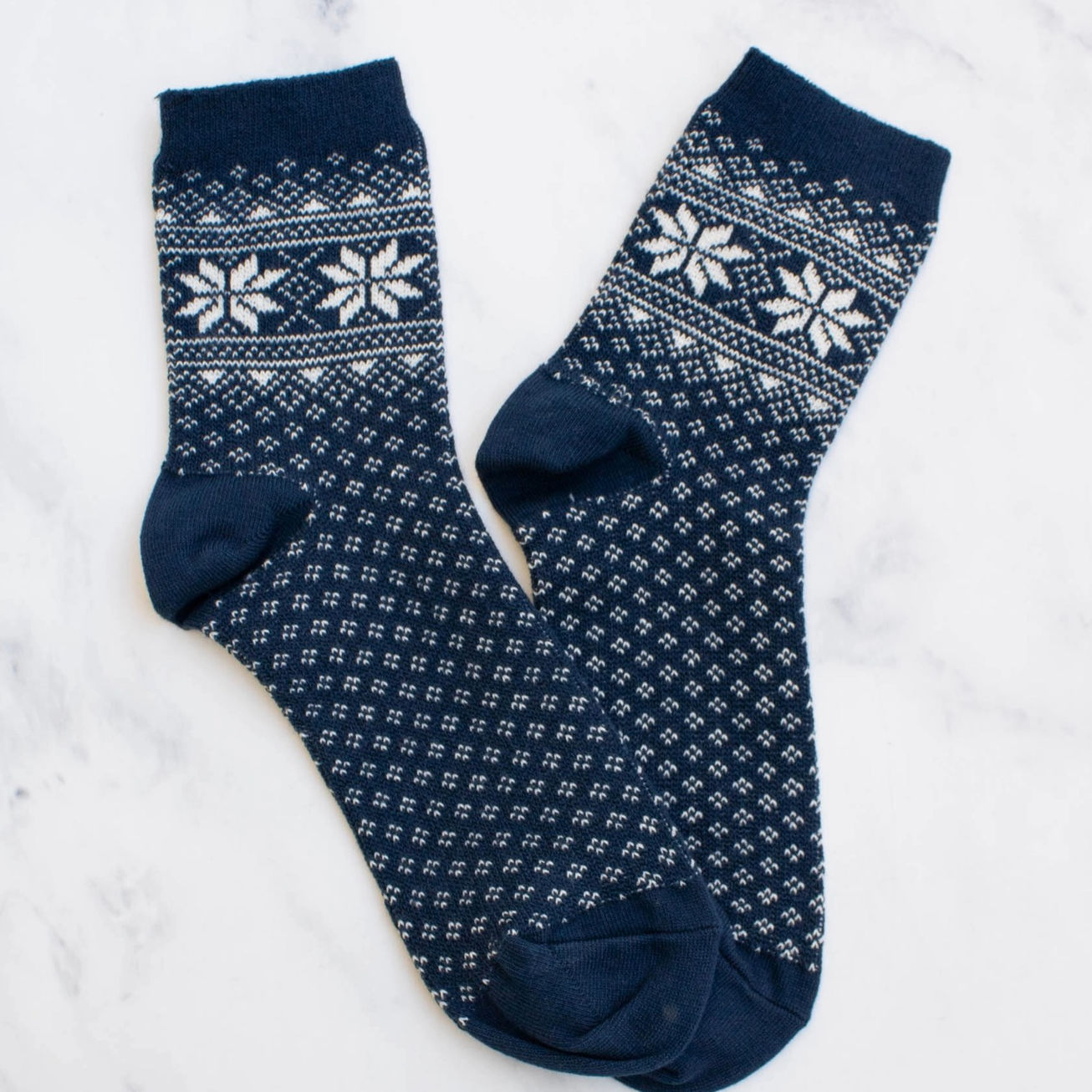 Introducing our Snowflake Comfort Socks in Navy! Made with high-quality materials and a unique snowflake design, these socks offer ultimate comfort and style. With a soft and cushioned sole, your feet will stay warm and cozy all day long. Perfect for any winter outfit. Made of 80% Cotton,15% Spandex, and 5% Polyester.