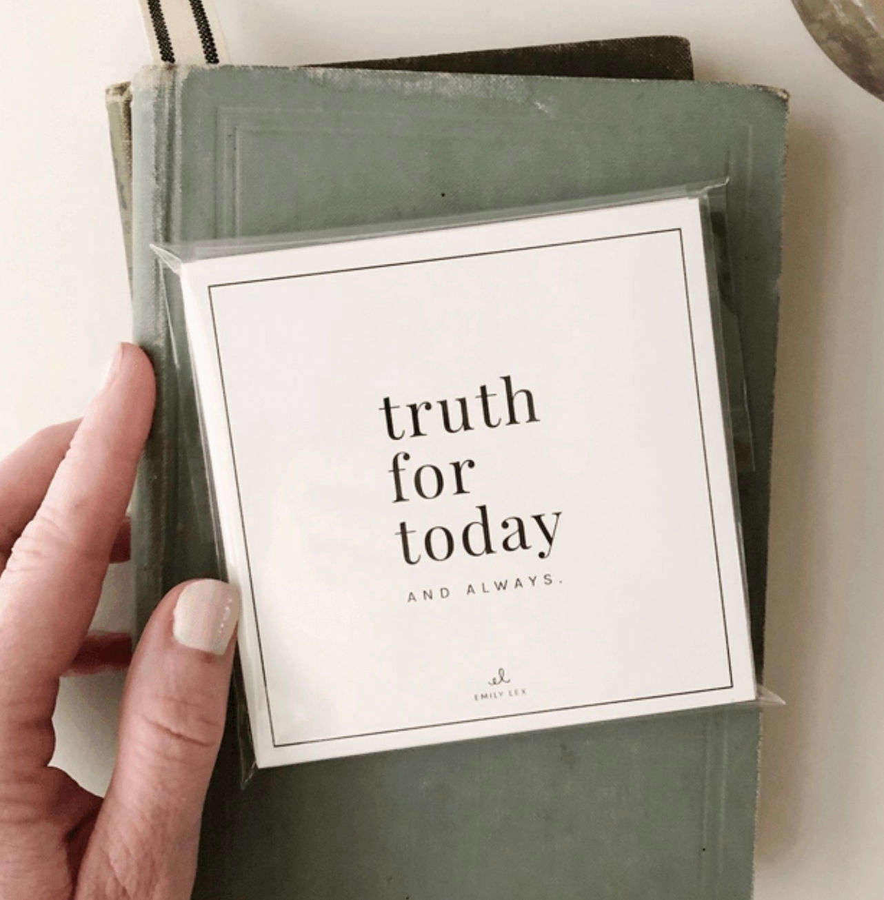 Elevate your daily reflections with our Truth For Today Cards - And Always, a 31 card set designed to inspire and comfort. Each 4" x 4" card is crafted from 130lb cotton eggshell textured paper, offering a luxurious and tactile experience. Featuring original watercolor artwork by Emily Lex, these scripture cards are a beautiful addition to any home, serving both as a decorative piece and a source of daily encouragement. Perfect for gifting to friends or cherishing yourself.