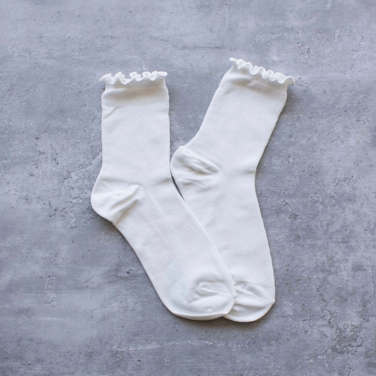 Crew socks featuring a delicate ruffle around the ankle,